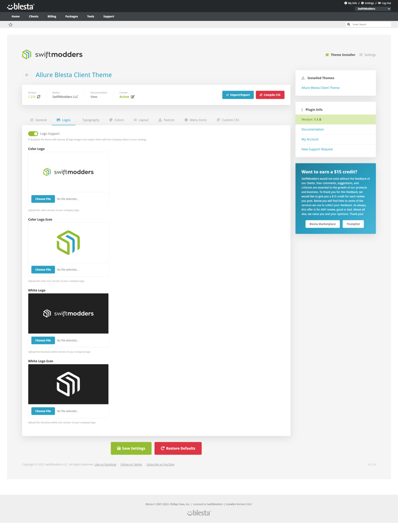 One of the most powerful features of any SwiftModders Blesta Theme is that you can customize many different aspects of your theme. The Allure Blesta Client Theme is no different and offers many ways to make your installation unique to your brand. This guide will walk you through the various settings you can customize.