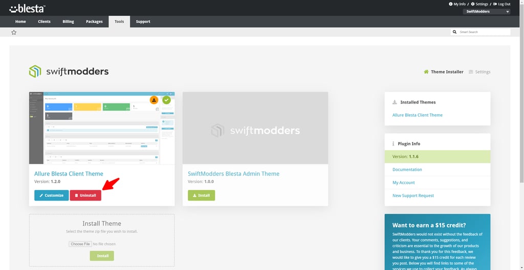 2. Uninstall the Allure Blesta Theme via the Theme Installer