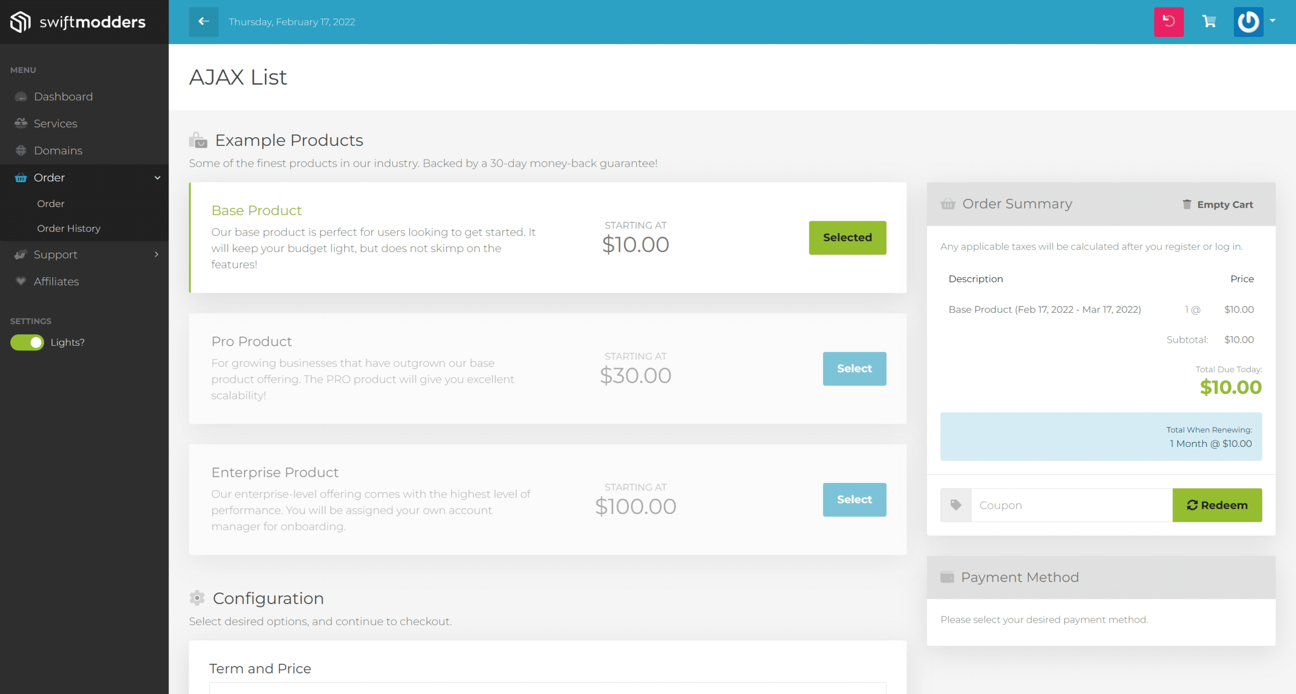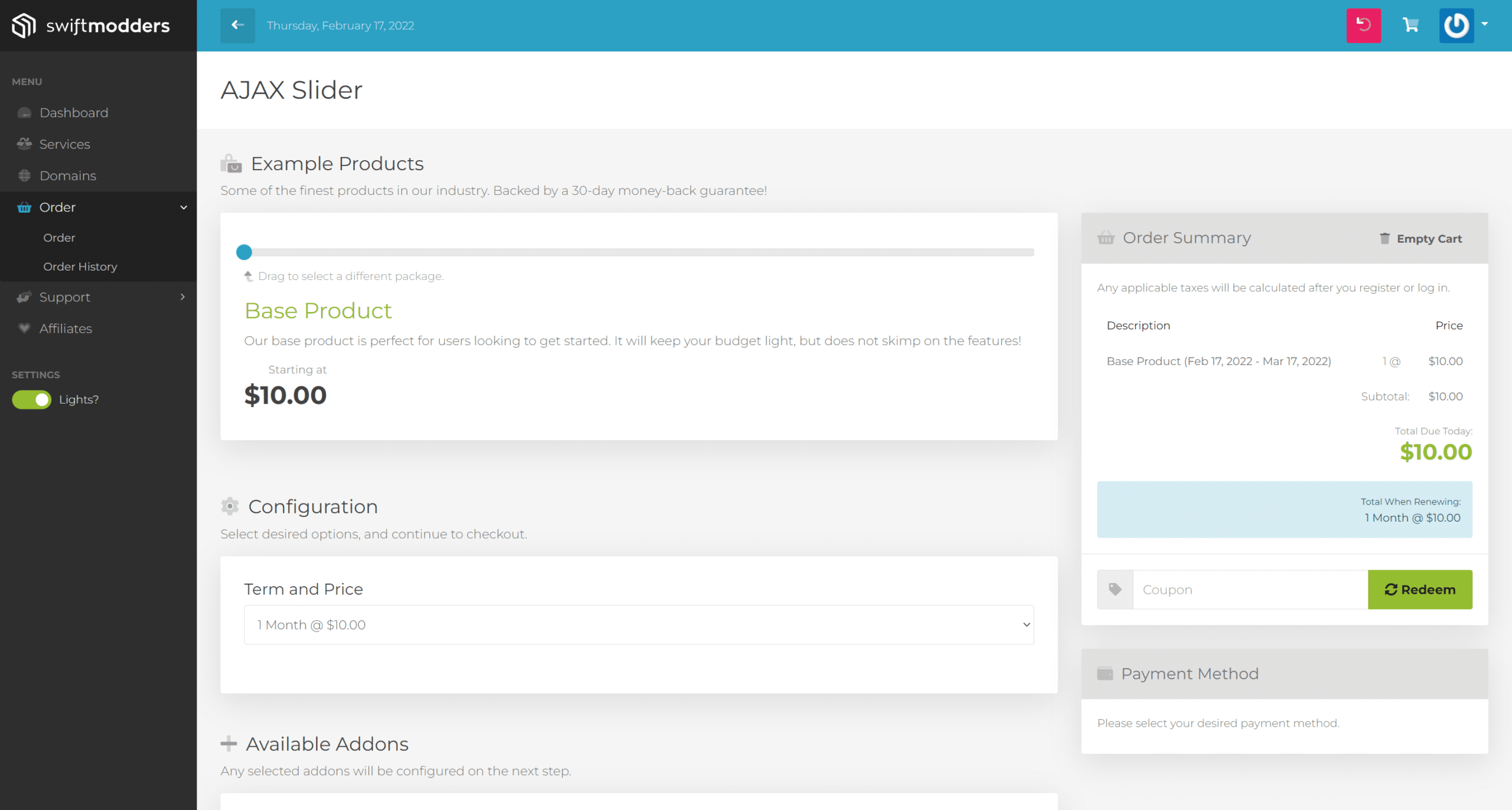 The Allure Blesta Client Theme comes with two (2) custom order forms designed to match the look and feel of this fantastic theme.