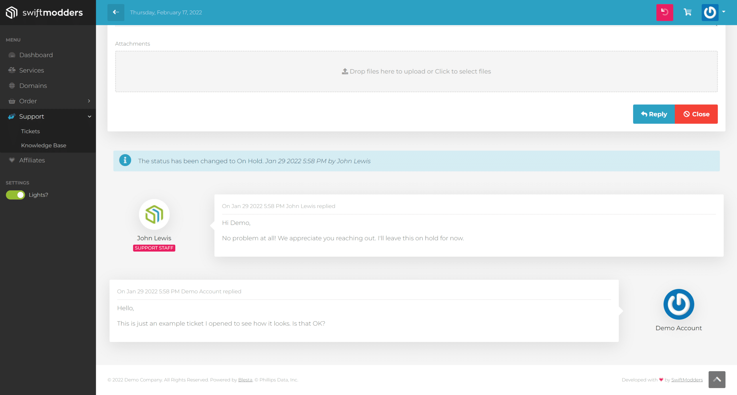 SwiftModders has been my go-to for WHMCS and Blesta Themes for over two years. Since I switched to Blesta over a year and a half ago, SwiftModders has produced a very nice Allure theme. Big Fan of John’s work; always very helpful in resolving bugs or issues quickly. I would definitely recommend SwiftModders for your next theme.